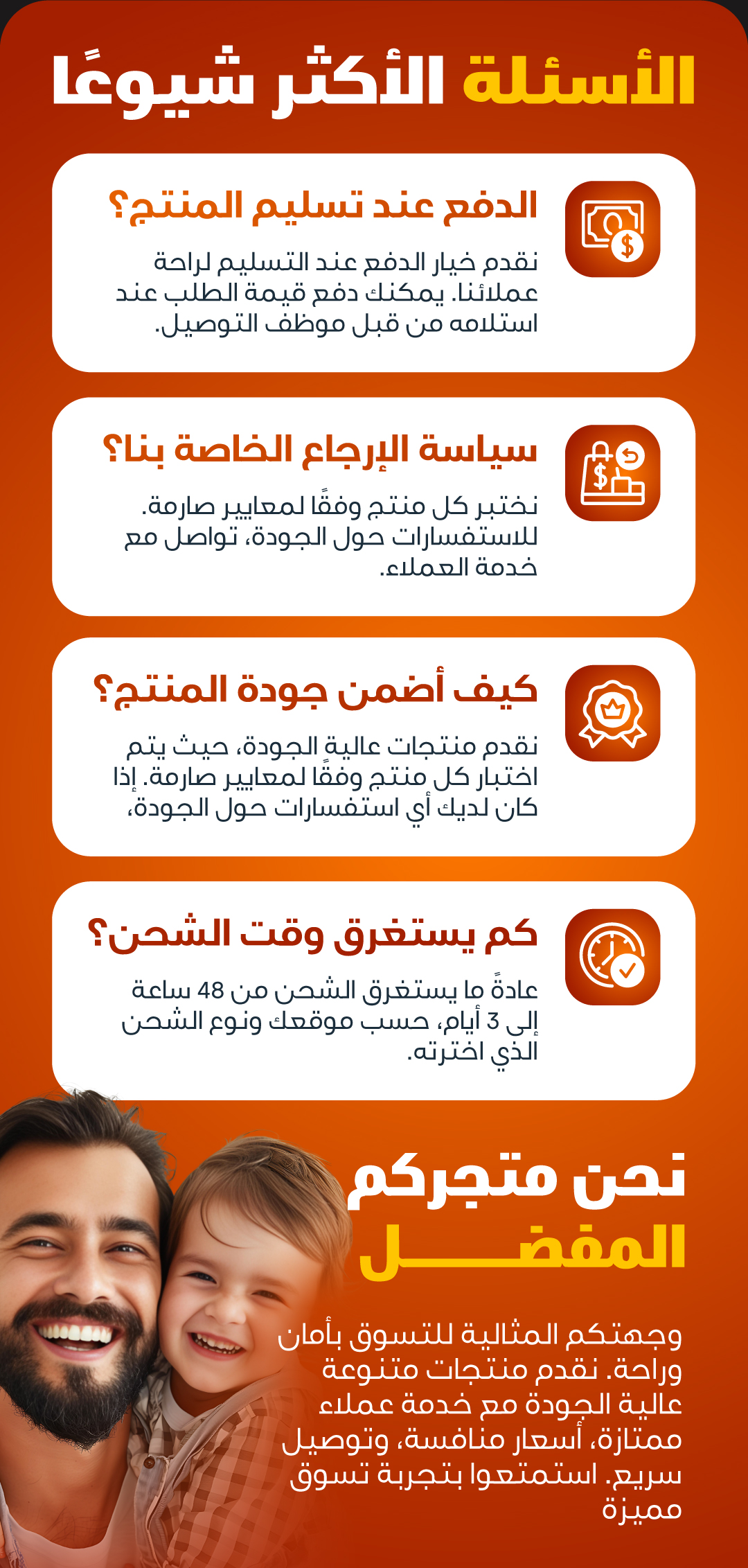 الدفع عند الاستلام مدعوم لهدا المنتج، اطلب طلبك وادفع عن وصول المنتج إليك.
