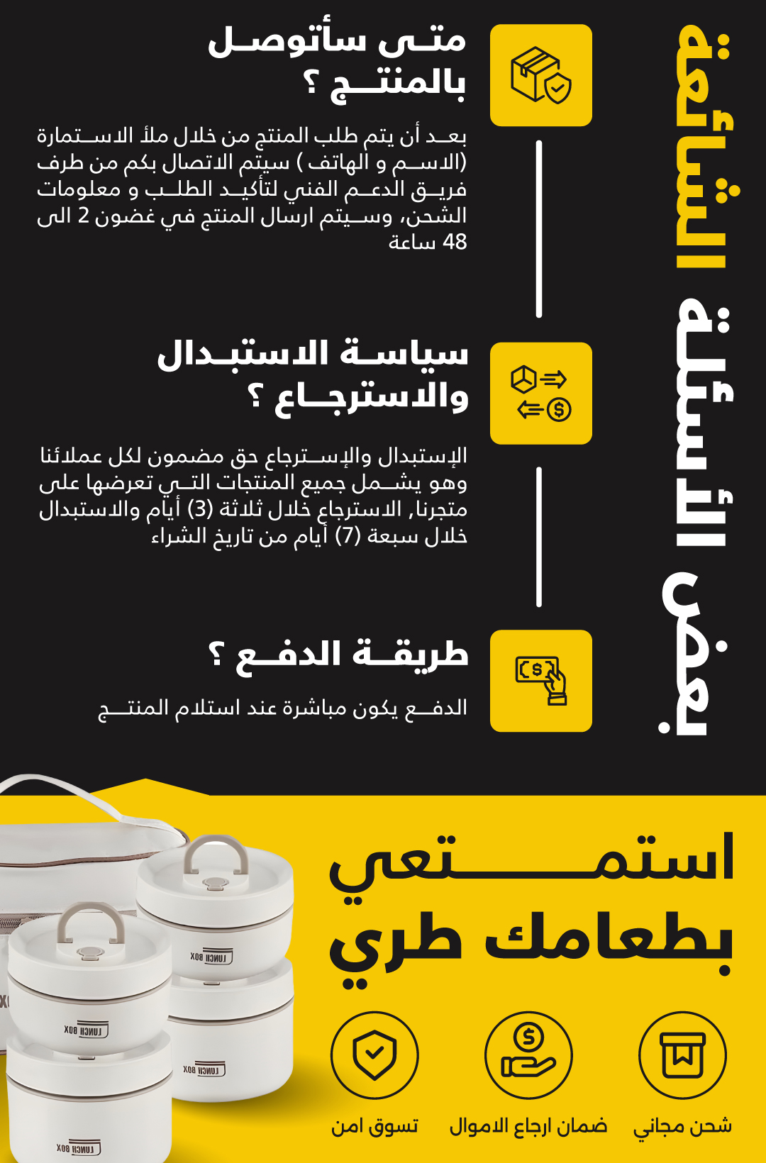الدفع عند الاستلام مدعوم لهدا المنتج، اطلب طلبك وادفع عن وصول المنتج إليك.