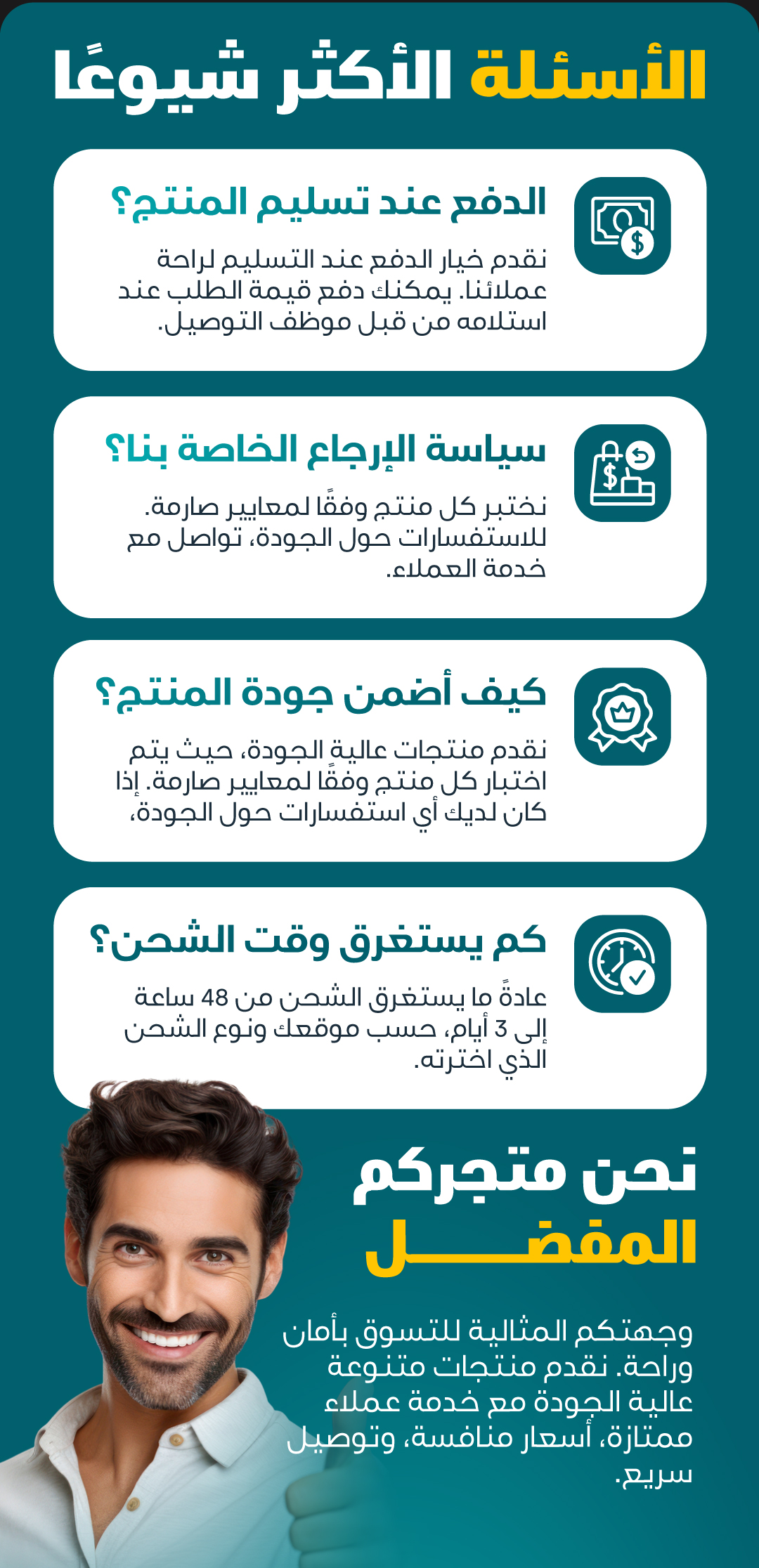 الدفع عند الاستلام مدعوم لهدا المنتج، اطلب طلبك وادفع عن وصول المنتج إليك.