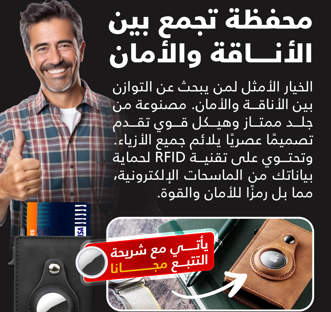 محفظة الجيب الجلدية بنظامين الحماية RFID و التتبع AIR TAG